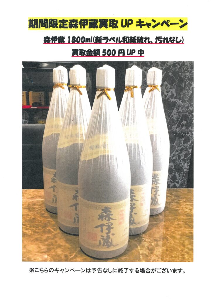 森伊蔵の買取金額UPキャンペーンについて